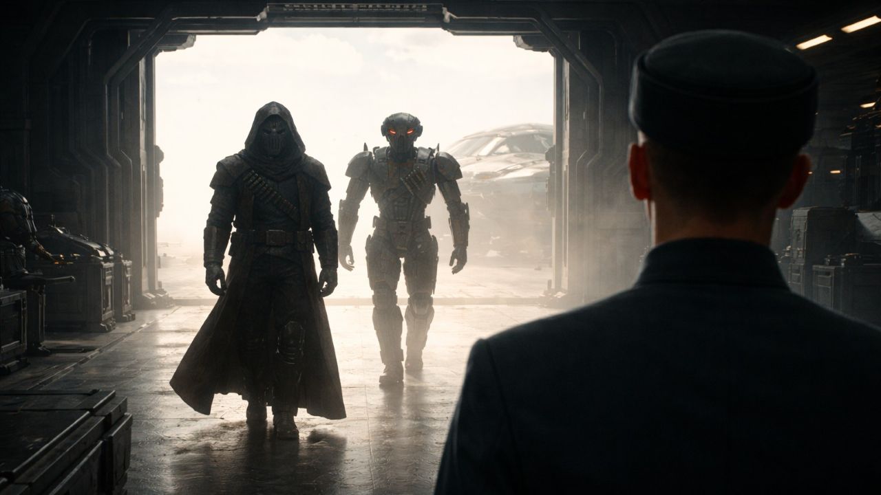 Ravok se zastavil uprostřed skladiště a pomalu se rozhlédl. HK-51 stál o krok za ním a jeho červené oči slabě pulzovaly. Ticho. Karrovi stormtroopeři nervózně přehmátli na svých blasterech. Ravok naklonil hlavu, jako by vyhodnocoval situaci. „Někdy věci zaberou čas,“ ozvalo se z jeho masky, hlas pokřivený, temný a klidný. „Zejména když nestojí za spěch.“